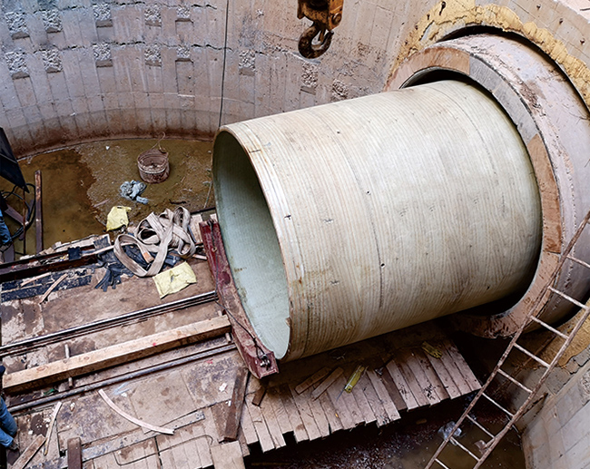 It has 5 production lines of glass fiber reinforced plastic sand-filled pipes (continuous winding process) at the international leading level, with an annual output of 60,000 tons of pipes