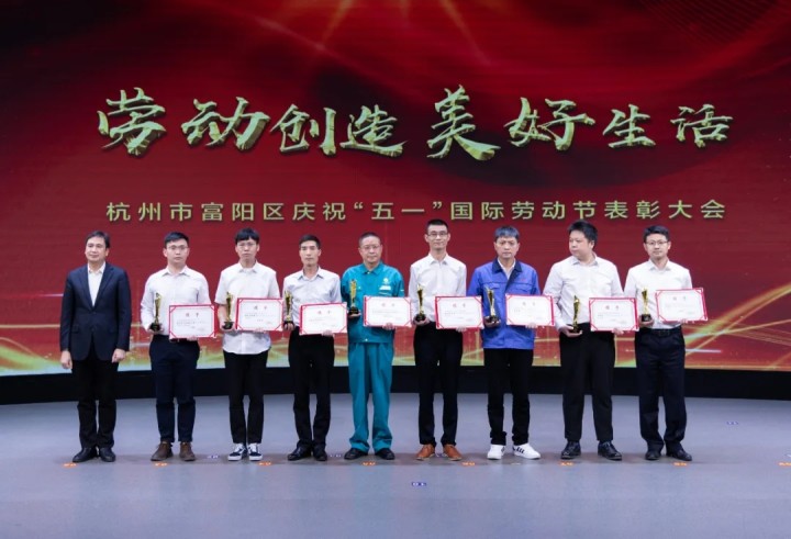 ?2022年4月29日,杭州市富陽區(qū)慶?!拔逡弧眹?guó)際勞動(dòng)節(jié)表彰大會(huì)在召開,公司徐崇玉研發(fā)團(tuán)隊(duì)榮獲2021年度富陽區(qū)職工“突出貢獻(xiàn)獎(jiǎng)”。