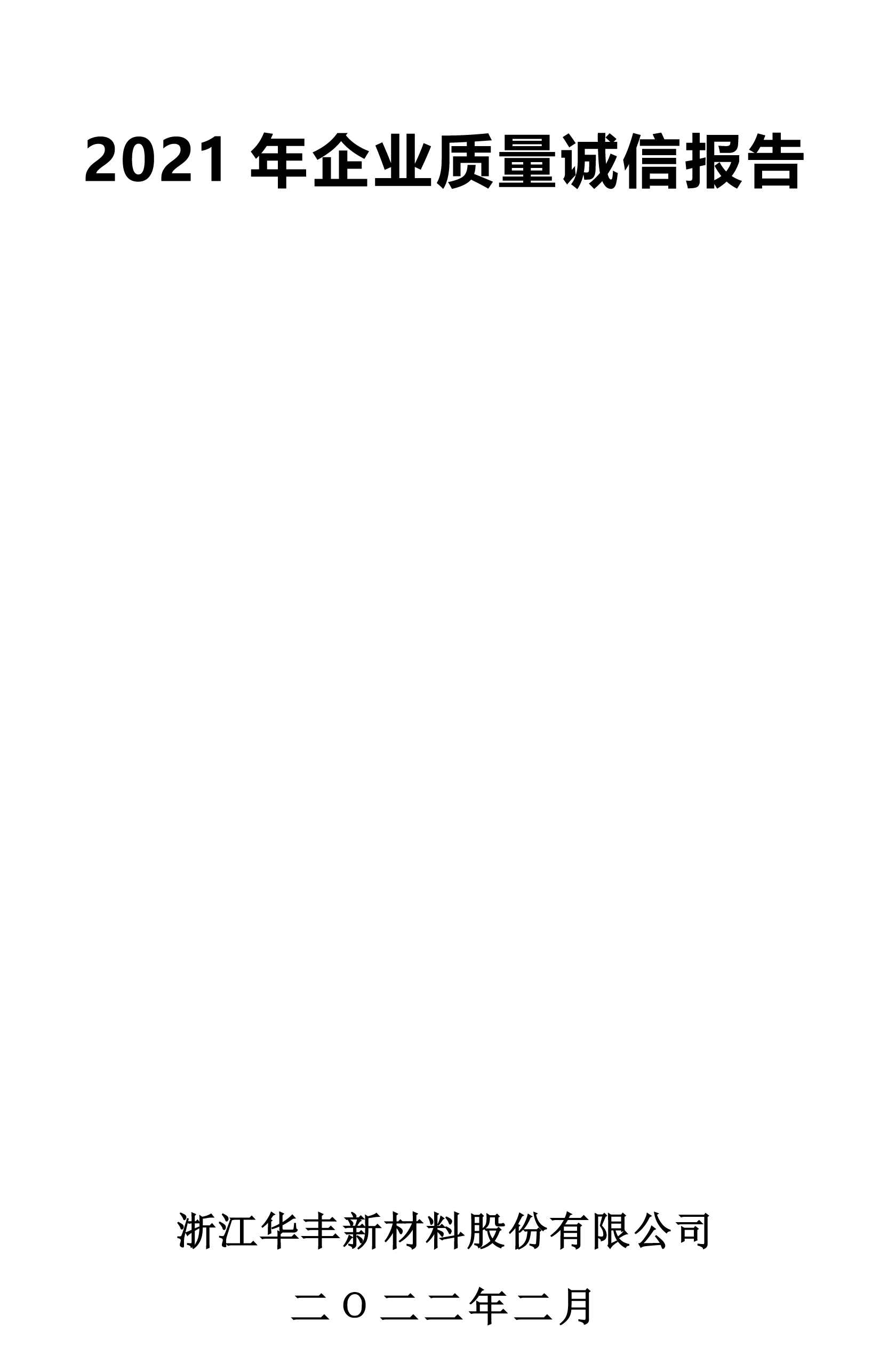 華豐新材料-2021年企業質量誠信報告