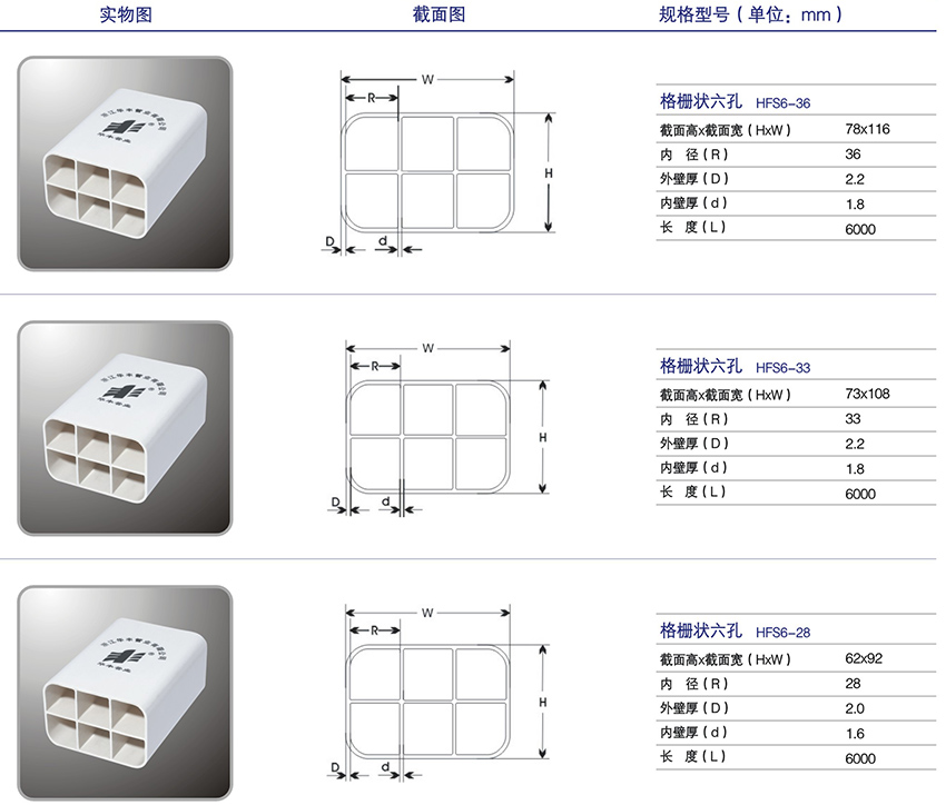 “豐”牌PVC六孔柵格管適用于通信光纜的穿導(dǎo)、隔離及保護,廣泛應(yīng)用于光纖通訊、有線電視、多媒體傳輸?shù)裙こ獭?br/>